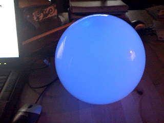 The TwitterLamp will sit your desk glowing more intensely blue as more updates arrives, more green as you get more @replies, and with more red in the mix as you get direct messages. To make the simplest version, I decided to run this via a USB cable to the computer, which will supply power and the data needed to light the lamp.