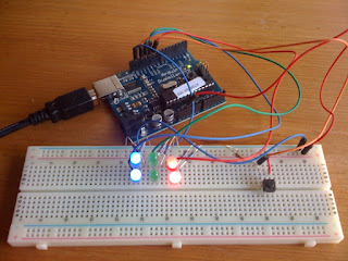 – Make a version of this using the blinkM programmable LED (it’s overkill but means that little hardware beyond the Arduino and the blinkM are required). That will require a different programming protocol. Using the blinkM would also make it very easy to intergrate other types of information such as a pulsing or color variation to indicate information beyond the three basic channels.